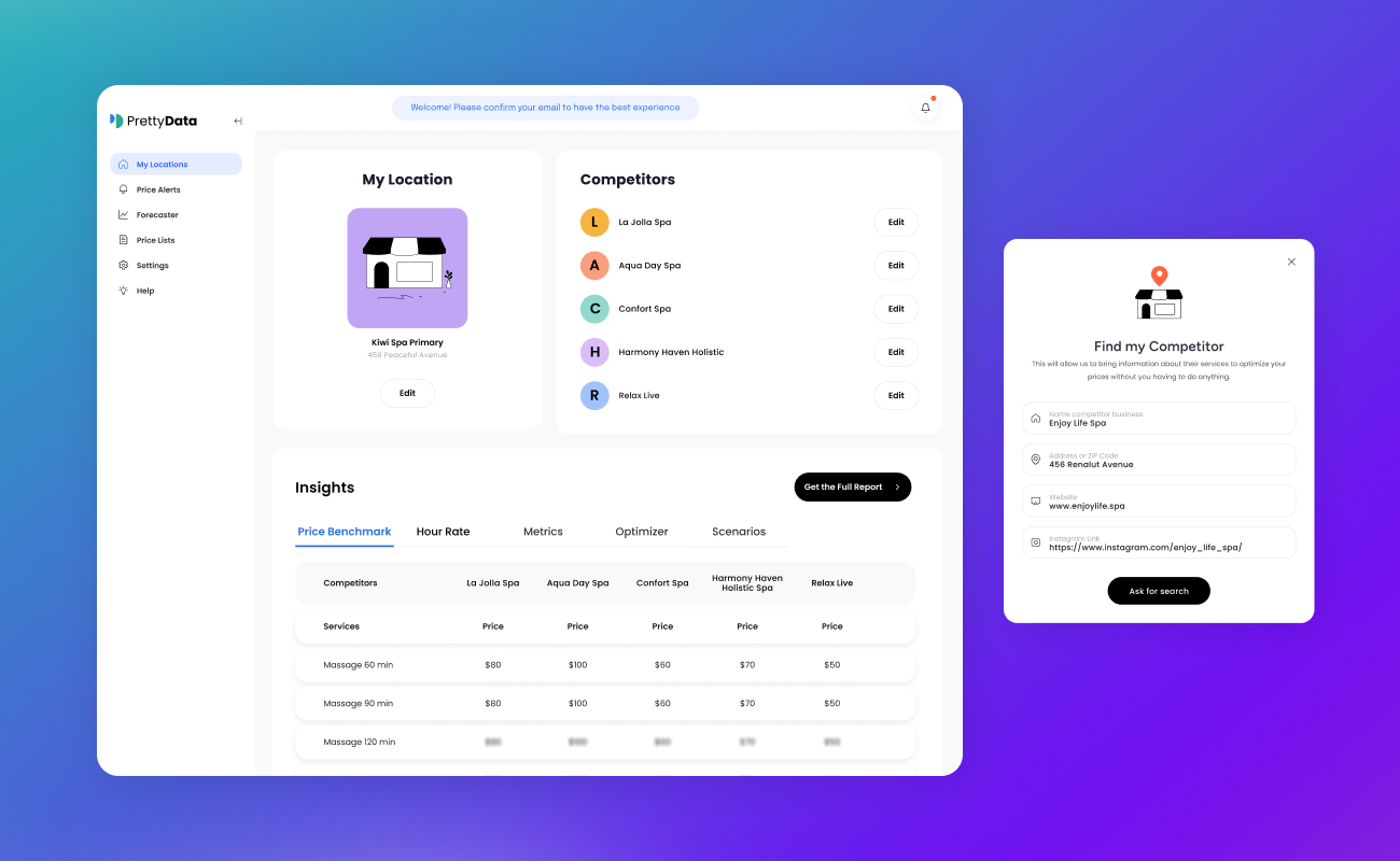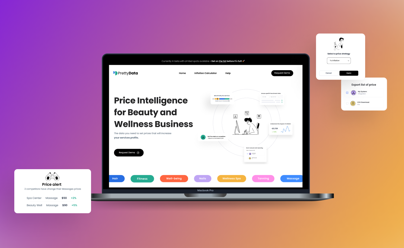 PrettyData partnered with us to design a smarter way for beauty & wellness professionals to grow their businesses—through strategic UX, bold branding, and a product that turns market knowledge into real-world gains.